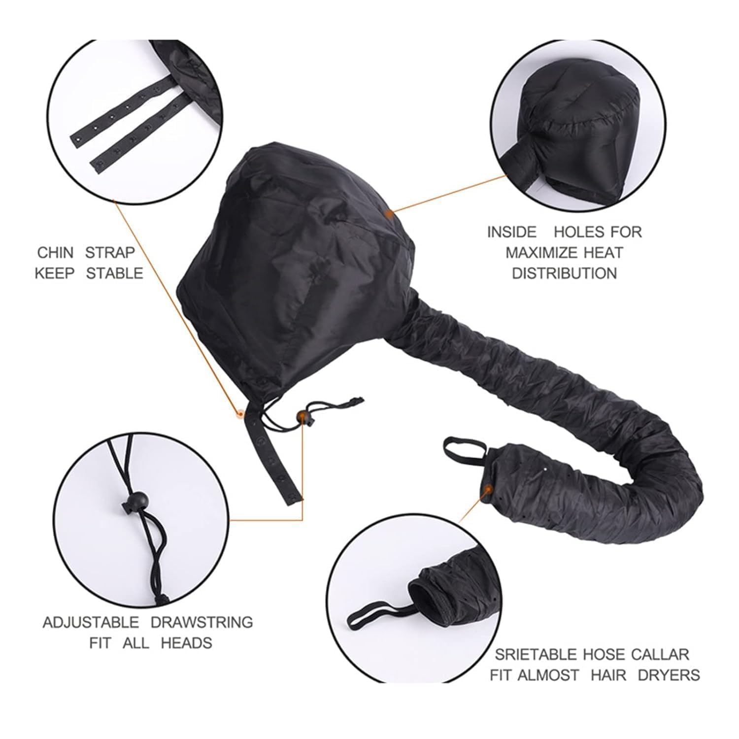Fiewmay Portable Hooded Hair-Dryer Bonnet Cap (Hands-Free Dryer Attachment)